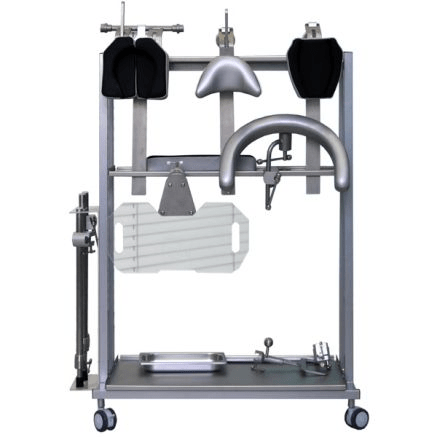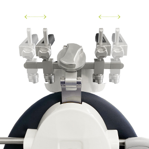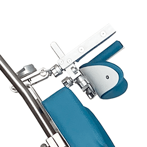 The unique design of the Articulated Headrest grants extreme versatility and precision, the side bars are adjustable (up/down and left/right) and removable, padded for better comfort and manufactured in Aluminium (including the screws) with a marking hole in the terminal block (available version without marking block). The back bar allows for perfect head stability and it allows for up/down and forward/backward adjustment thanks to an innovative articulation.