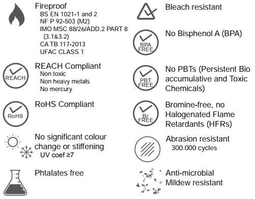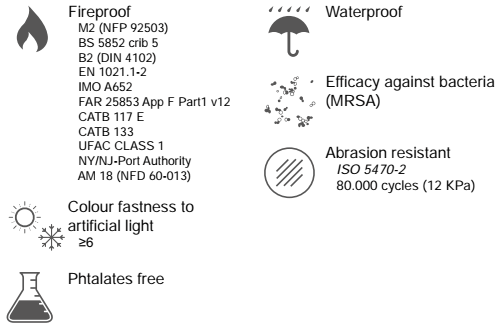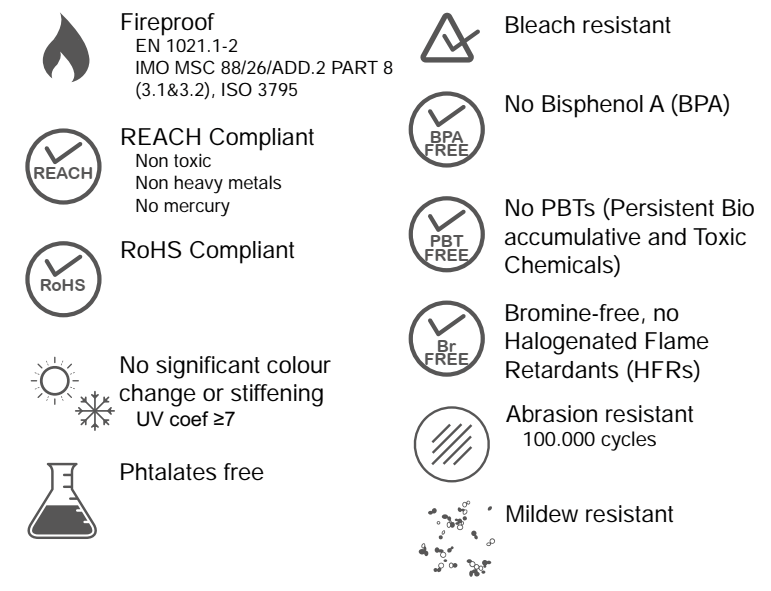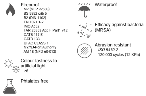 The upholstery comprises 4 separate padded sections fully detachable for easy cleaning and disinfection, made of high density undeformable foam and the cover is a bi-elastic, abrasion-resistant, flame retardant and antimicrobial medical grade Skai available in over 80 different colours and textures.