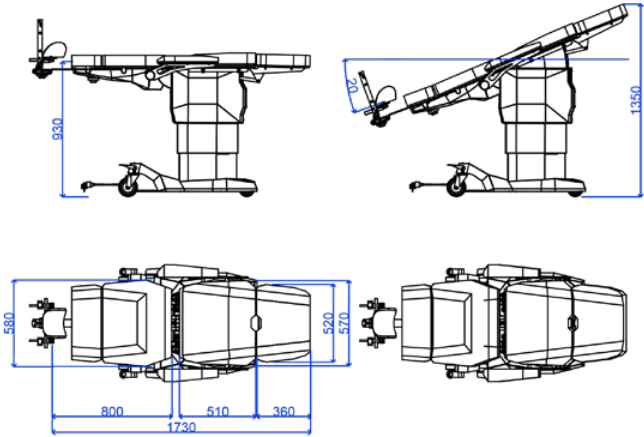 EDGE TMS Chair reaches Trendelenburg position with 20° inclination.